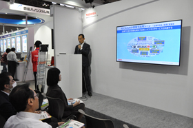 展示ブースに隣接したミニセッションコーナーでは、東芝の提供するクラウドサービスの紹介や、活用した導入事例などについて、各担当がプレゼンテーション形式でセッションを行いました。いくつか抜粋して紹介します。