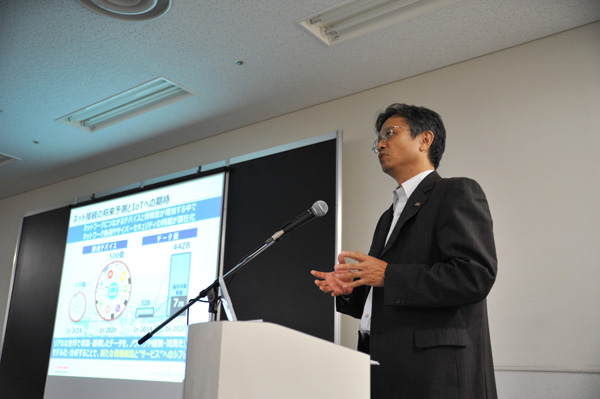 セミナー会場では、IoT&メディアインテリジェンス事業開発室長 沖谷 宜保が東芝グループが提供する物流サービスと目指すべきIoTの世界について講演しました。