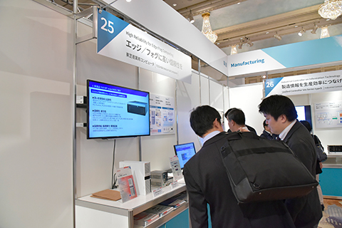 最初のコーナーでは、パートナーとの共創によるオープンイノベーションへの取り組みを紹介。特に注目されたのは、三井物産との共創によるDX(デジタルトランスフォーメーション)グローバル展開の紹介展示。運行計画にCPSを活用して遅延リスクを低減し、顧客満足度を高める英国の鉄道運行会社Greater Angliaをはじめ、IoT・AIを活用して溶接不良の迅速な検知を可能にするスペインのGestampの事例、そして発電所で熱効率の向上や機器異常の予兆検知を行うメキシコのFALCON GROUPとの取り組みが紹介された。また、IoTビジネス共創のためのコミュニティ活動として推進する、ifLinkオープンコミュニティの活動紹介にも多くの人が足を止めていた。クラウド上で“こうすれば、こうなる”というIF-THENのルールを決めてスマートフォンアプリに配信するだけでIoTの世界が広がる。展示では、実際にセンサーやデバイスとの連携を実演しながら、数多くの事例を紹介。誰もが簡単にIoTを活用できる世界を実現するオープンなコミュニティ活動に興味を持った来場者が熱心に説明を聞いていた。